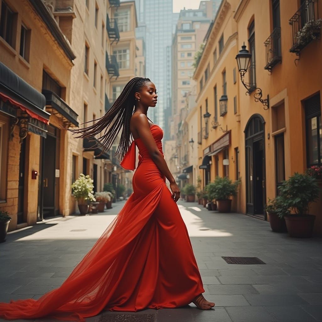 This image shows a beautiful Nigerian woman with long, intricately woven braids, captured in soft natural light. The portrait conveys grace, strength, and beauty, reminiscent of vibrant and conceptual portraiture.
