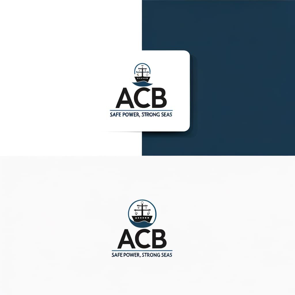 Elegant, minimalistic logo design for a marine technical solutions company offering ship electrical services. Features the acronym 'ACB' and reflects 'Safe Power, Strong Seas'.