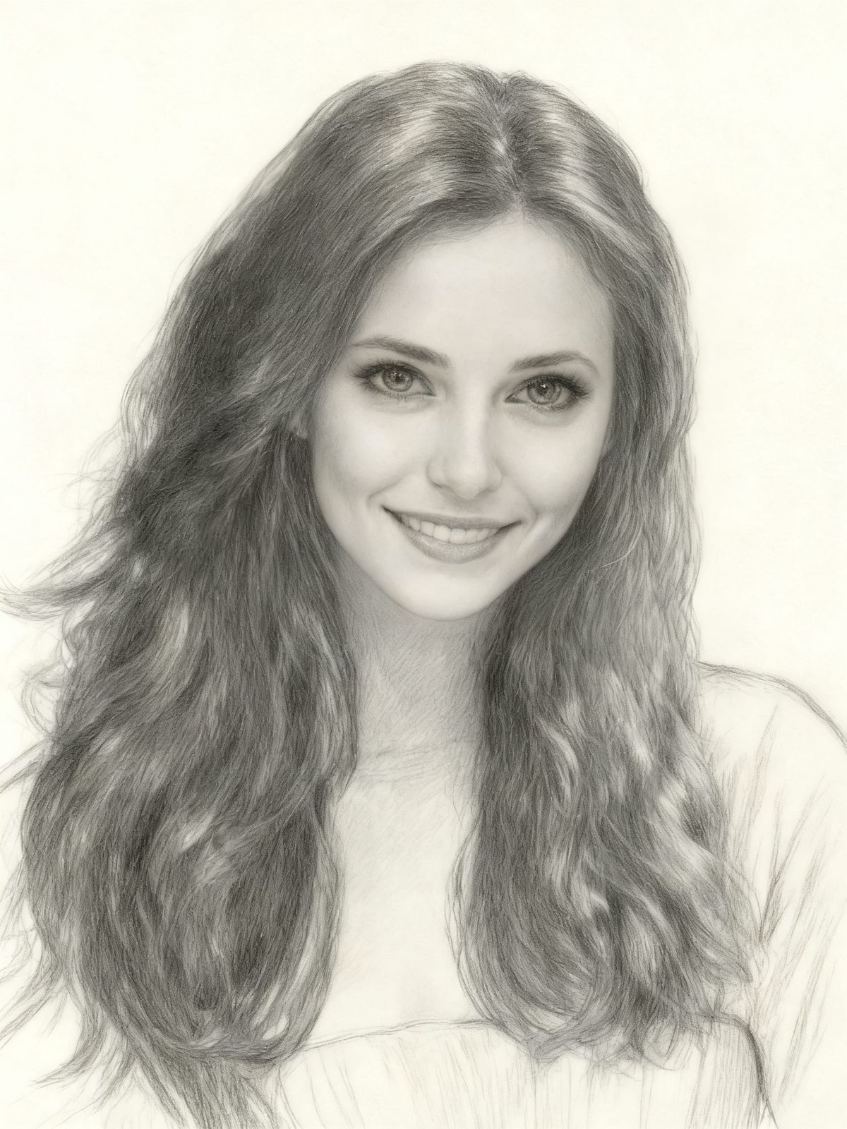 This image is a black and white pencil sketch. It features a subject with a neutral, unadorned background, emphasizing the drawing's detail and form.