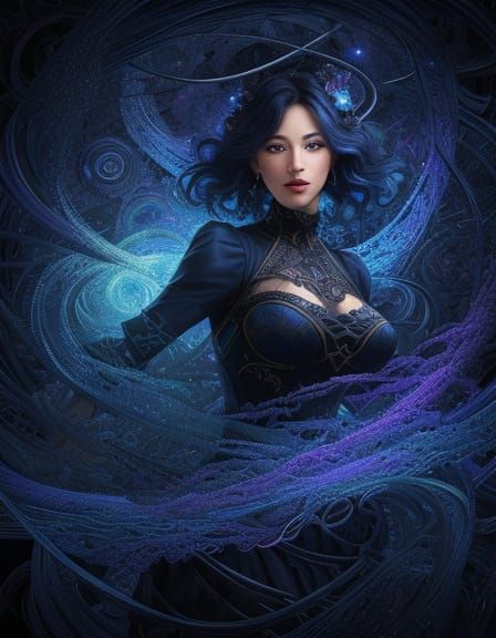 A mesmerizing, ultra-realistic portrait of a lithe cat amidst a whirlwind of cables, pipes, and machine parts, set against a swirling night sky with fractal complexity and vibrant colors.