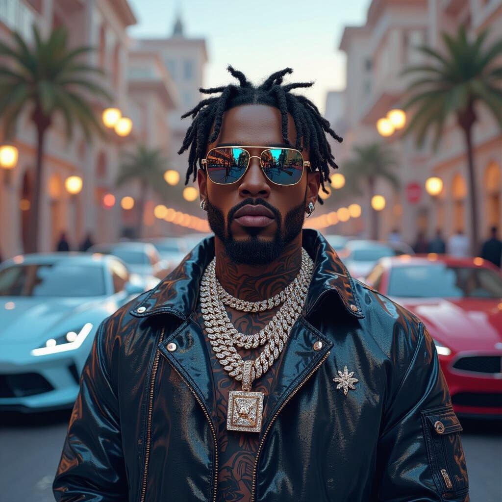 Design stunning rap album covers with iced out jewelry and luxury cars using our free AI generator. Easy and fast!