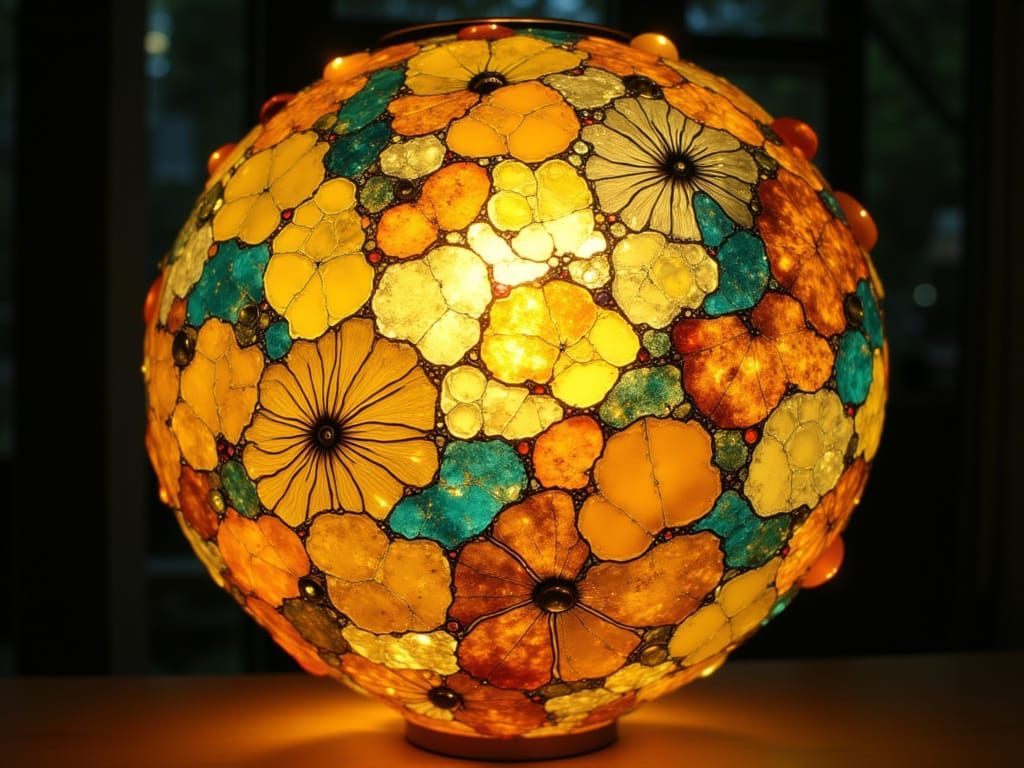 A striking image of a gothic lighthouse constructed entirely from glass, bathed in golden hour light. Features bold lines, bright contrasting colors, and intricate details.