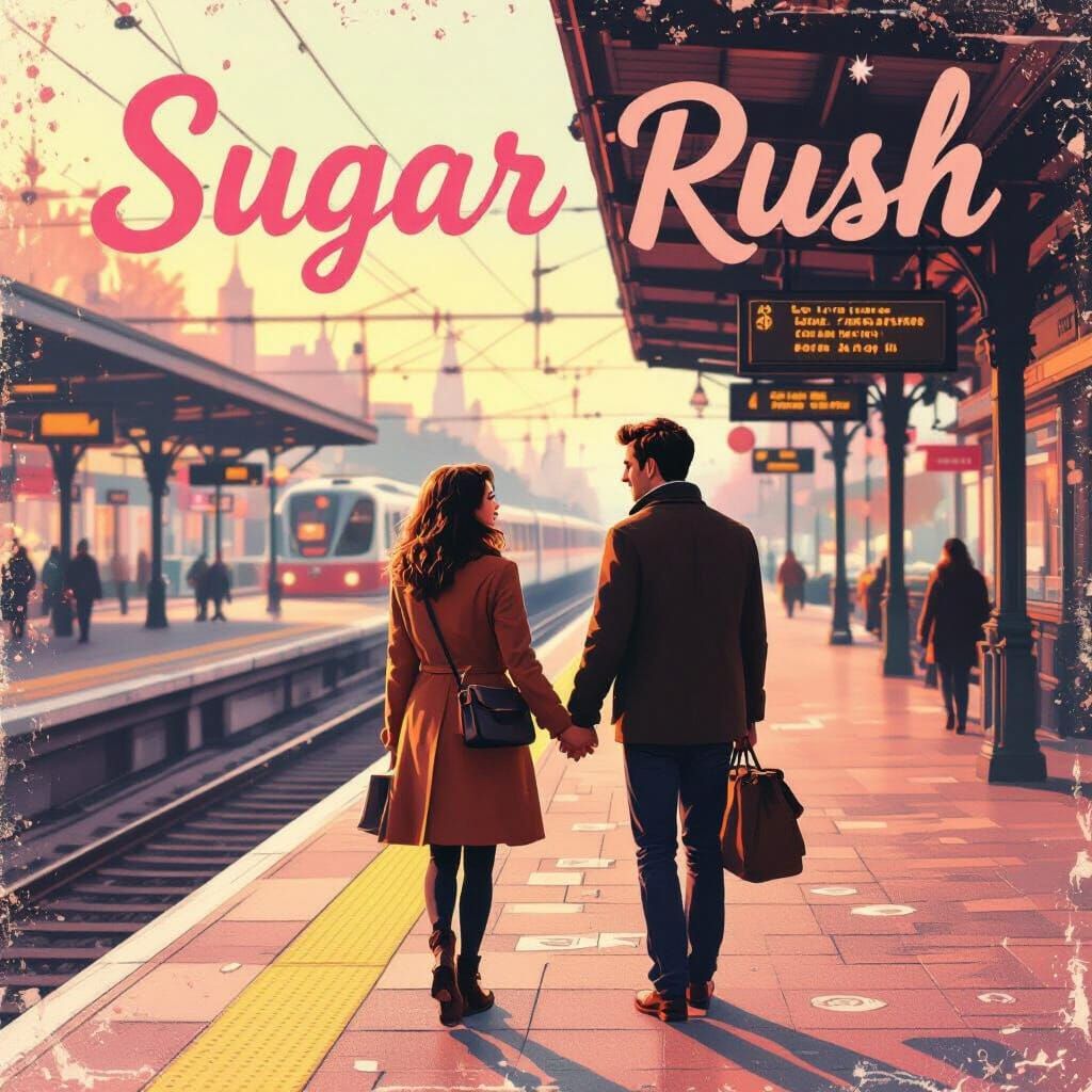 This image shows a couple holding hands in a vintage-style poster. The aesthetic evokes 90s romantic comedies with its soft lens blur and pastel colors. The image has a detailed matte painting style.