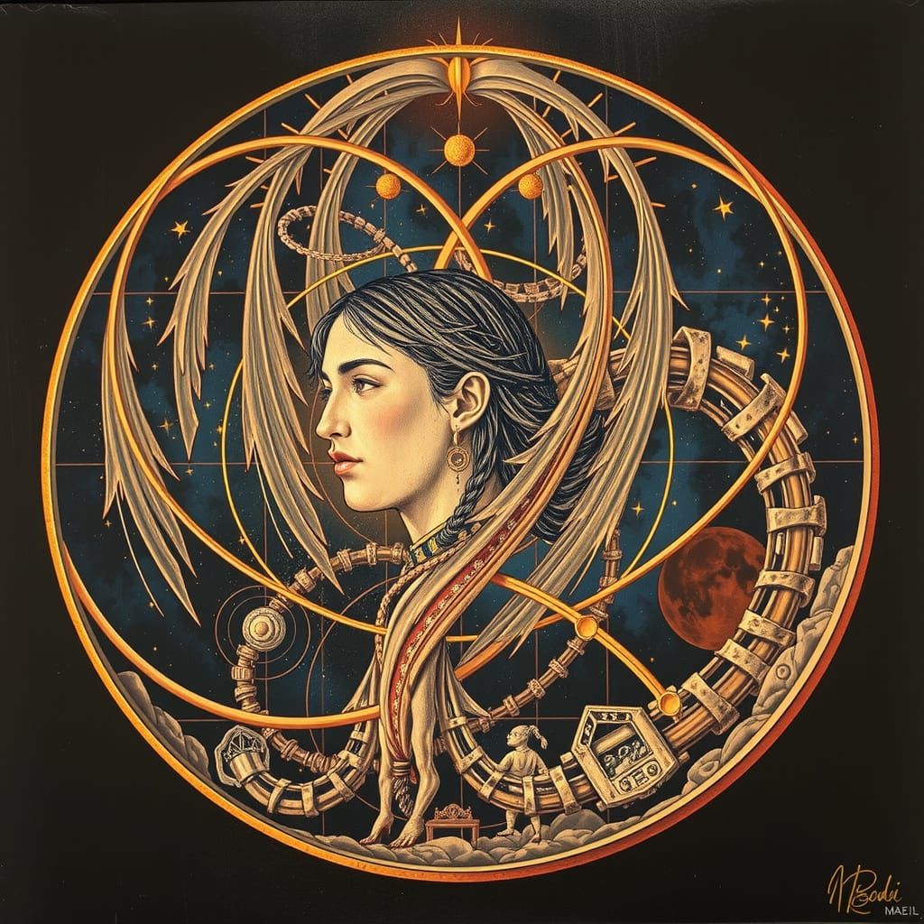 This image shows an AI rendering of the concepts of phenomenology, cosmology, anthropology, pharmacology, geology, and ontology. It represents the AI's interpretation of these complex subjects.