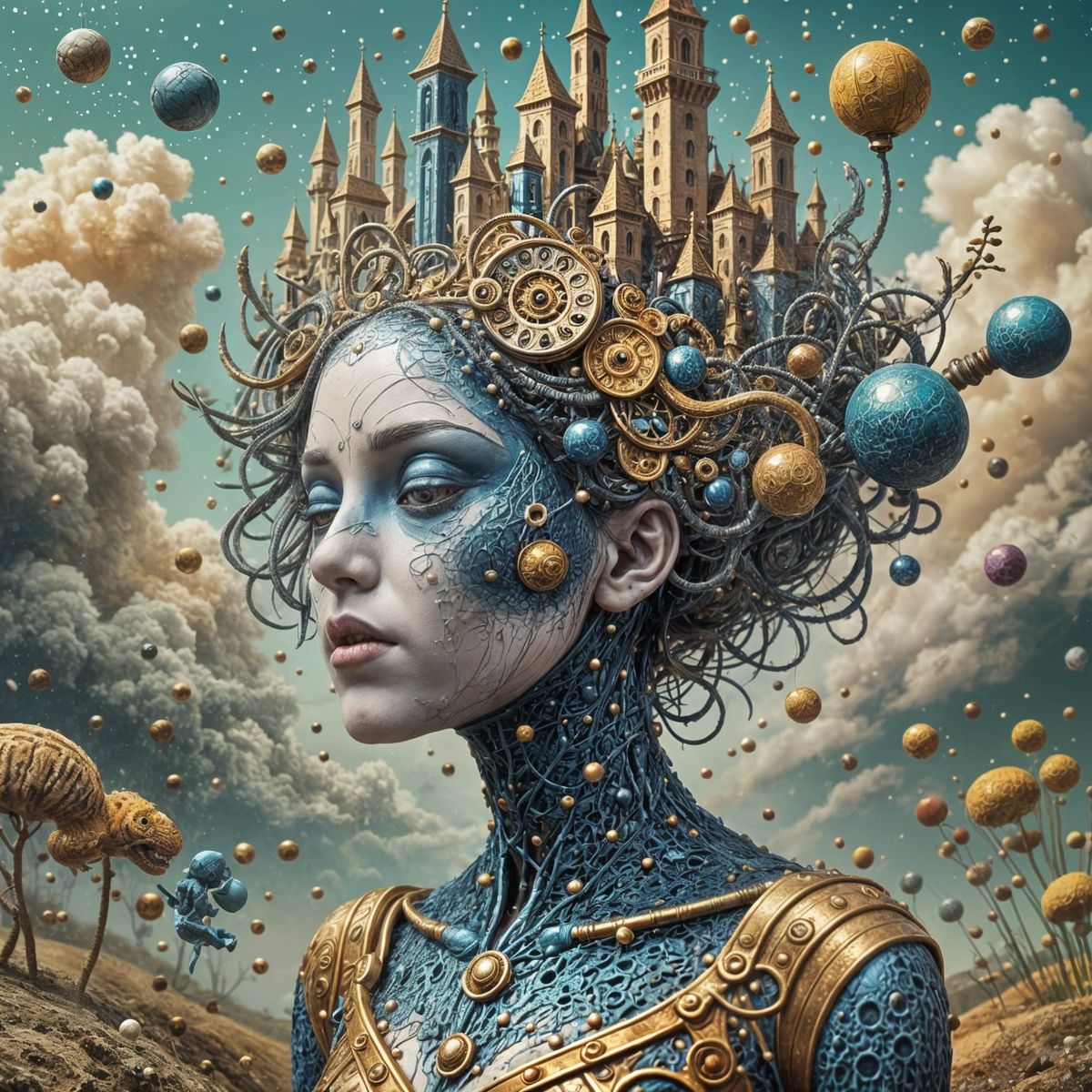 Generate your own hyper-realistic androids with intricate fractal faces. Easy, free, and flexible AI image creation.