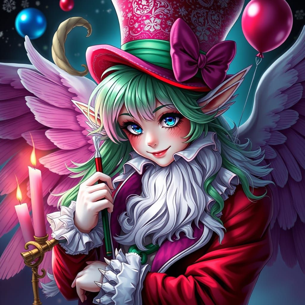 This stunning image showcases a beautifully detailed anime-style angel in a vibrant, dreamlike setting, blending fantastical and realistic elements.