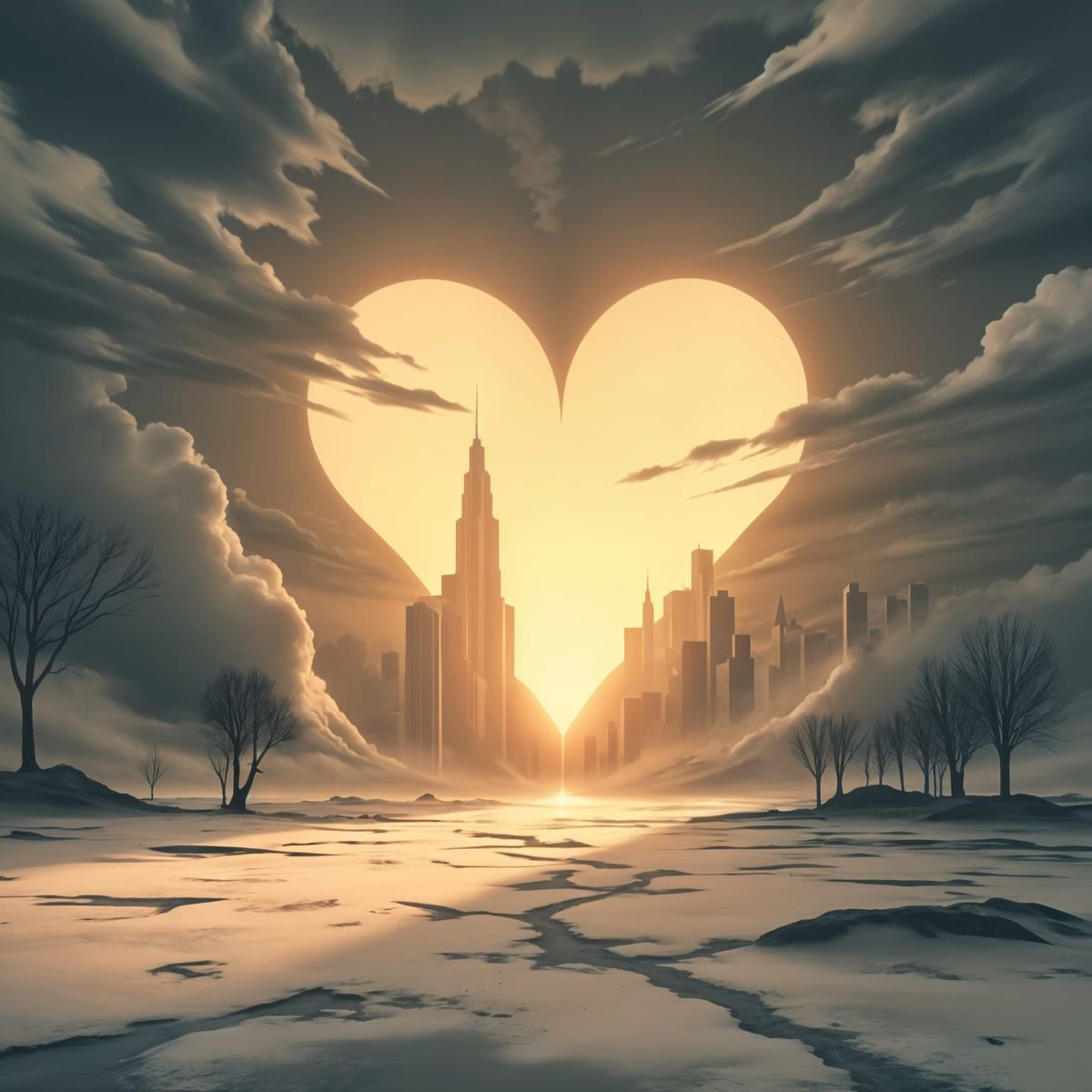 This image is a striking black and white representation of a heart-shaped shadow, lit up in a beautiful double exposure effect, creating a sense of depth and emotion.