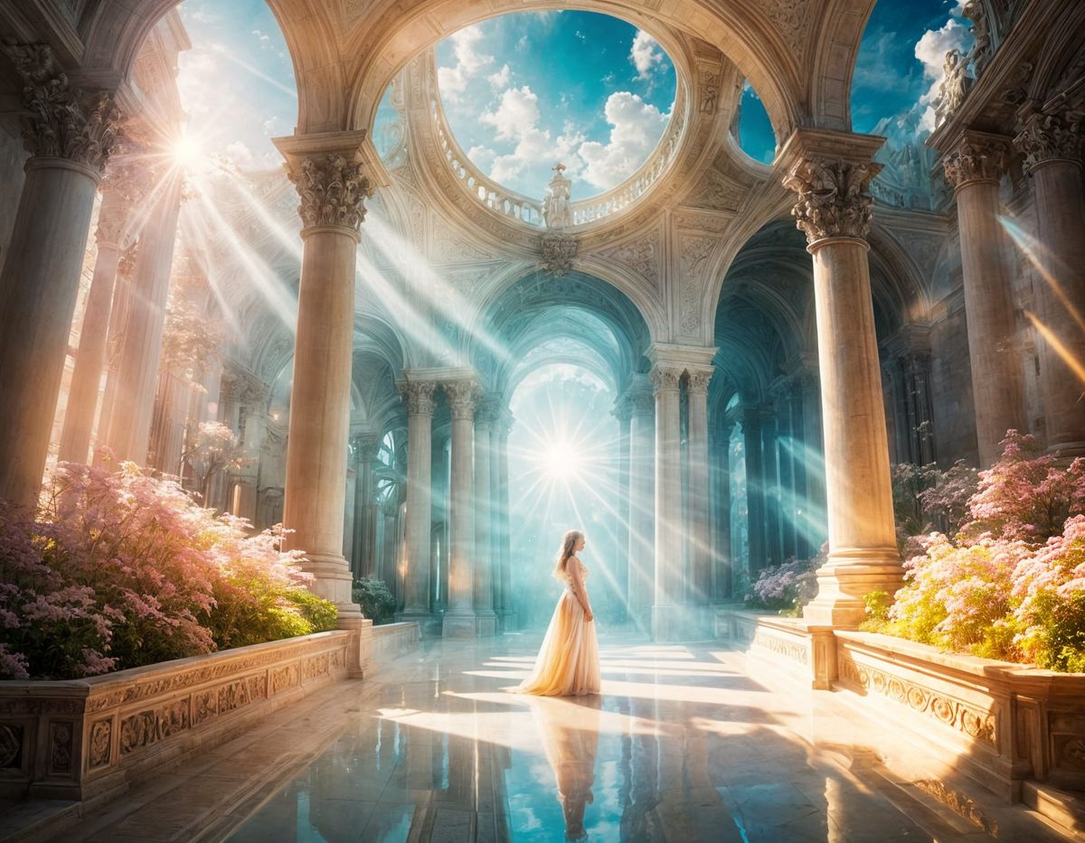misty luminescent pastel glowy volumetric lighting dreamy atmosphere dream-like ethereal floating objects, endless paths, distorted perspect...