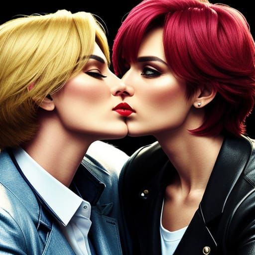 A tender image capturing the intimacy of two women sharing a romantic kiss