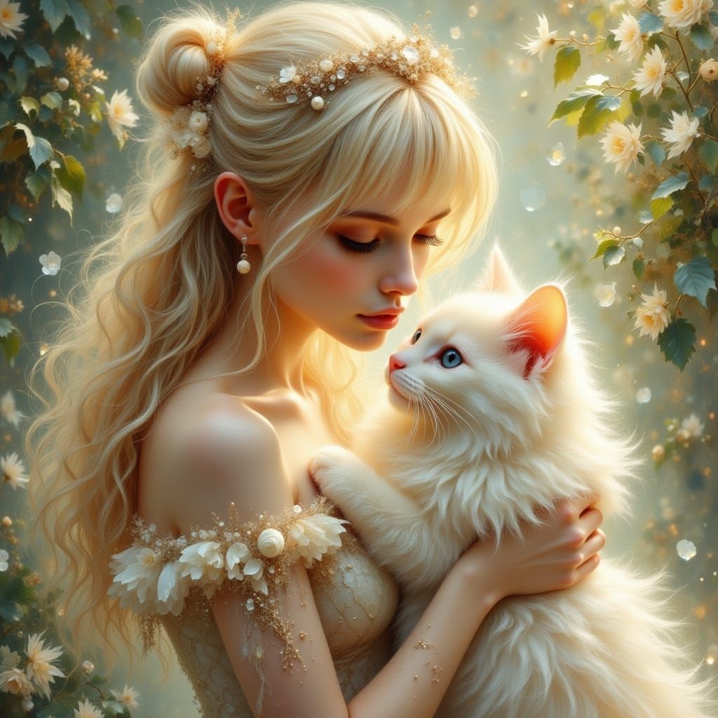 <lora:Intricate Oilpaint:1.0> <lora:Impax v2:1.0> <lora:Dreamy Enchantment:1.0> <lora:EtherealVisionsFlux:1.0> digital art, {painting of a woman holding a cat in her arms, magali villeneuve', louis royo, wadim kashin. ultra realistic, by Ma Shi, magali villeneuve and monet, very beautiful cute catgirl, ...