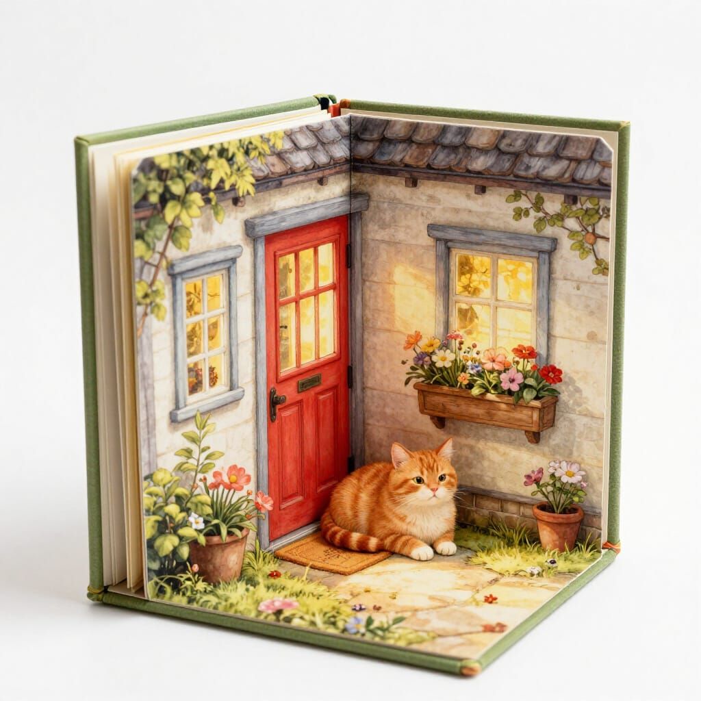 Easily design unique farmhouse images, complete with charming details like cats and popup books. Free and simple to use!