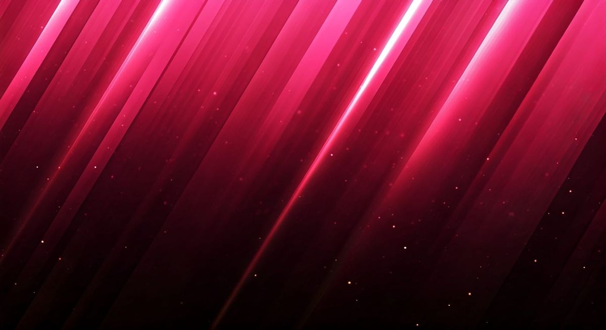 A vibrant background featuring a dynamic mix of fuchsia pink, gold, black, and white, enhanced by subtle flames and glowing sparkles. The image incorporates geometric light streaks and upward motion effects in an anime aesthetic.