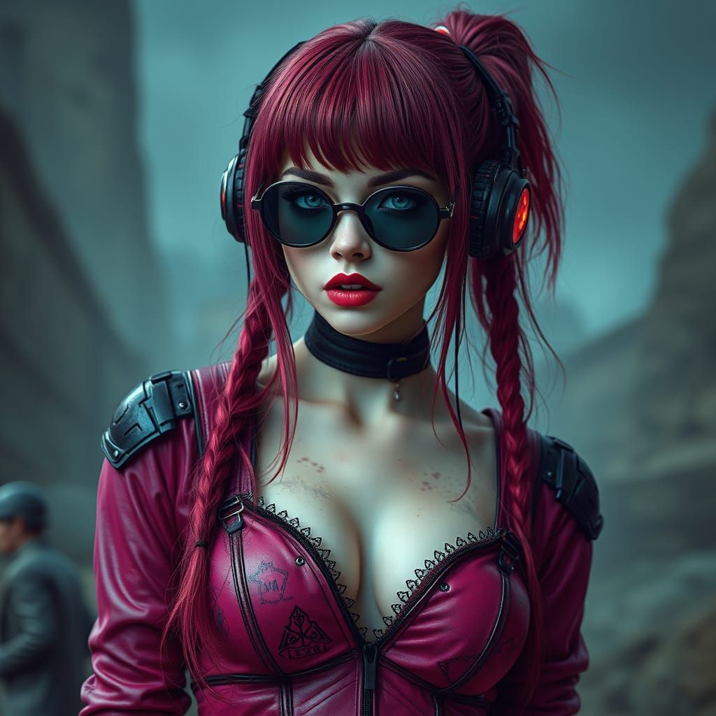 This image shows a futuristic woman with gothic and grunge influences. The digital art creates a science fiction aesthetic.