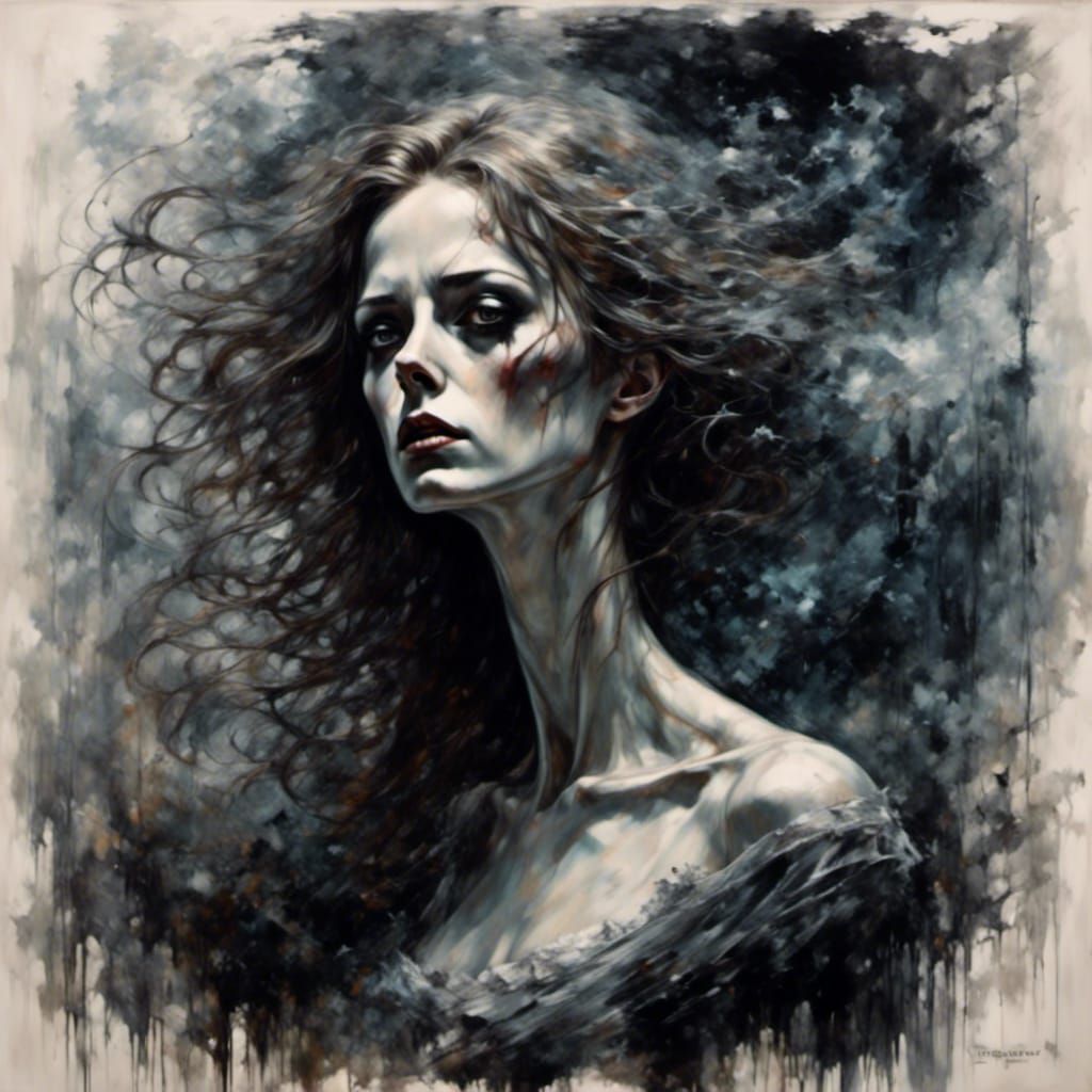 This image shows a transparent ghost portrait in a dark fantasy style. The artwork evokes drama through its ethereal composition and haunting atmosphere.