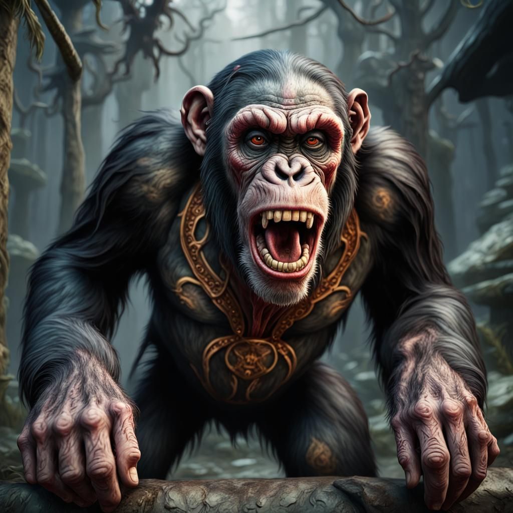 Create your own terrifying killer chimpanzee images with our free AI image generator. It's easy and fun!