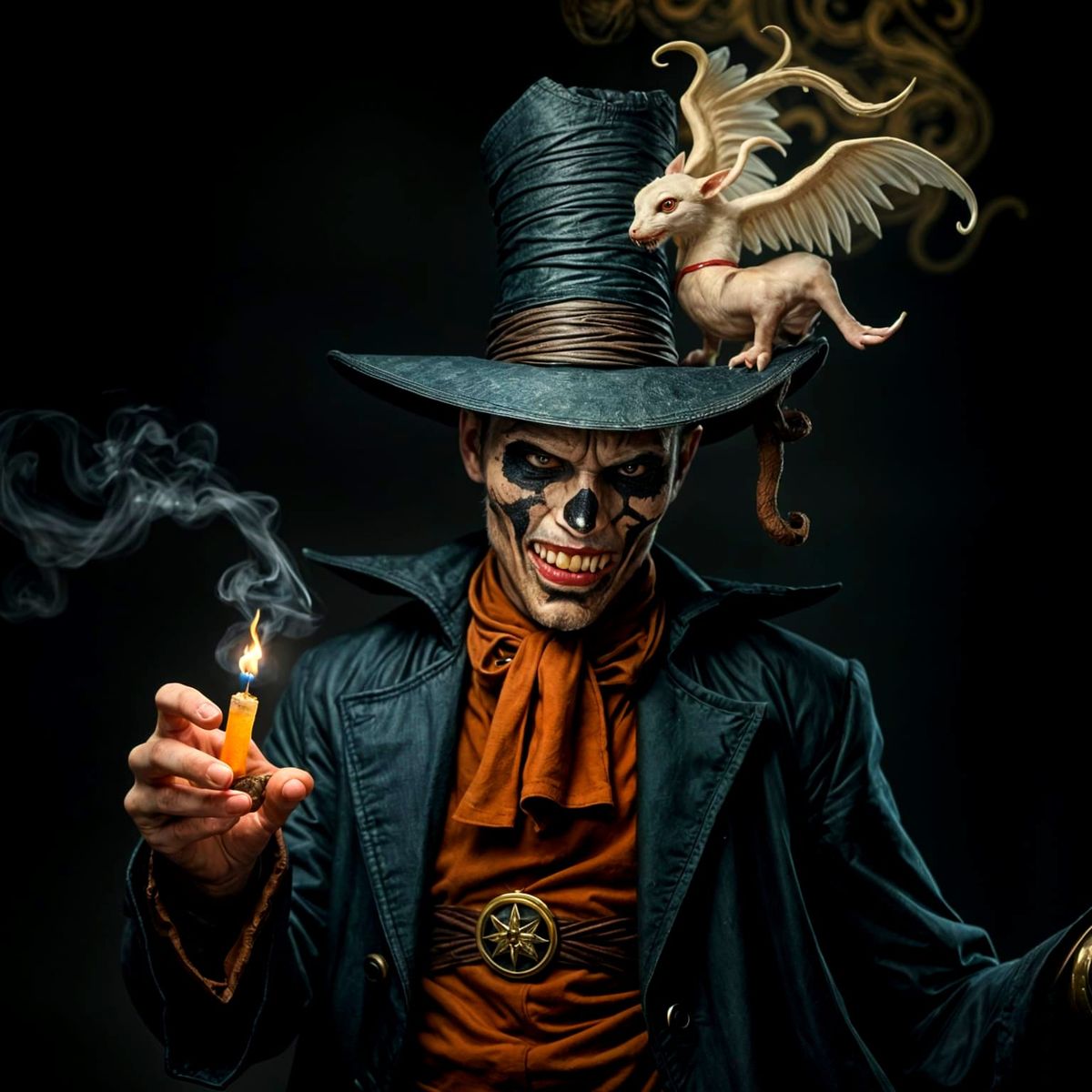 This image shows a mysterious figure shrouded in darkness, with an air of malevolent intent. The artwork combines dark fantasy elements with a sense of foreboding menace.