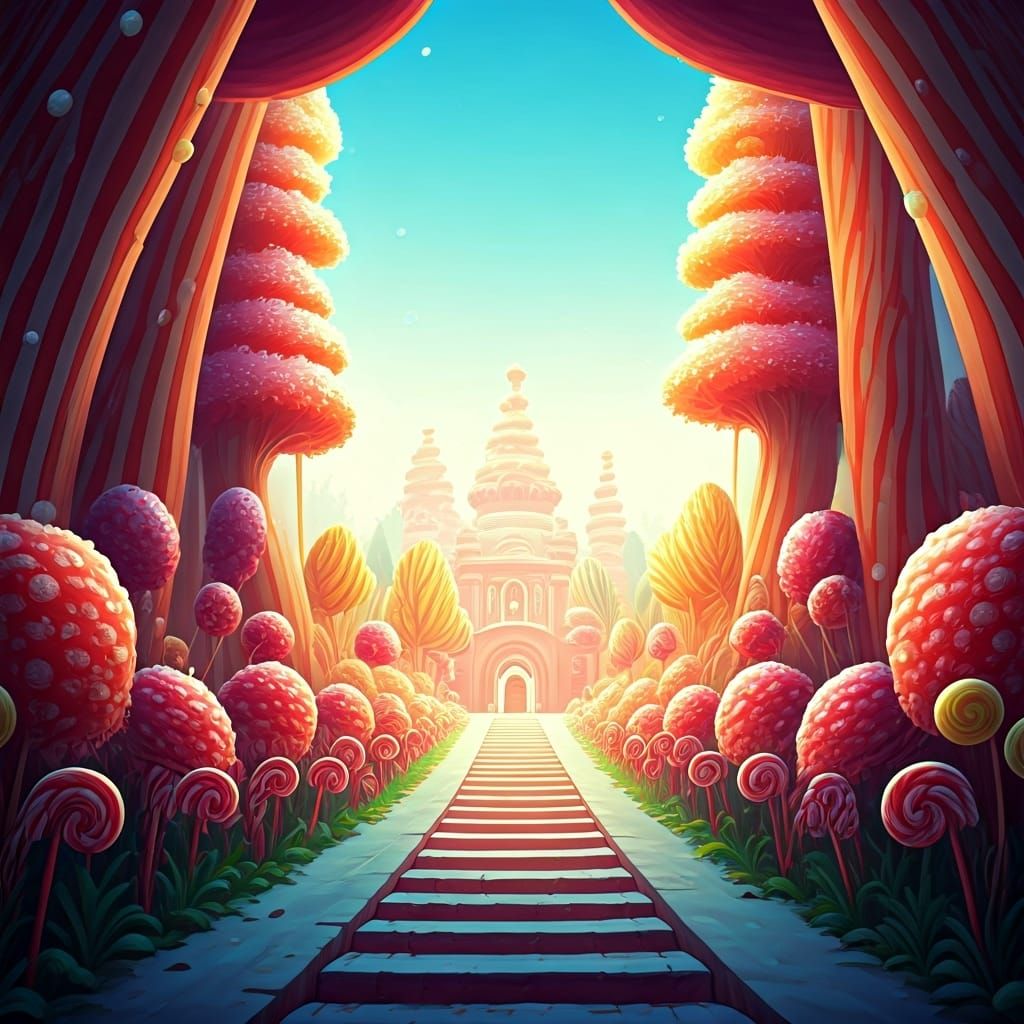 Create your own magical candy gardens with our free AI image generator. It's easy and fun!