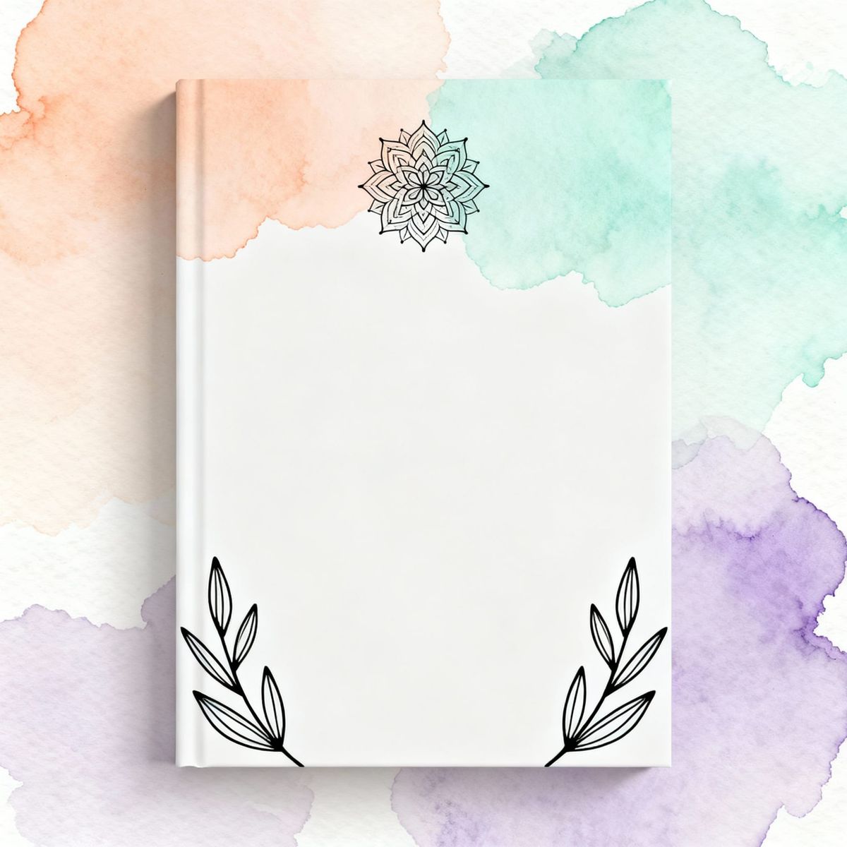 matching back cover design for "Relaxing Mandalas Coloring Book – Stress Relief, Mindfulness & Cozy Designs", same soft pastel watercolor background as the front cover (peach, mint, light lavender), small and delicate mandala in the top or center, minimal and elegant layout, large blank area for description ...