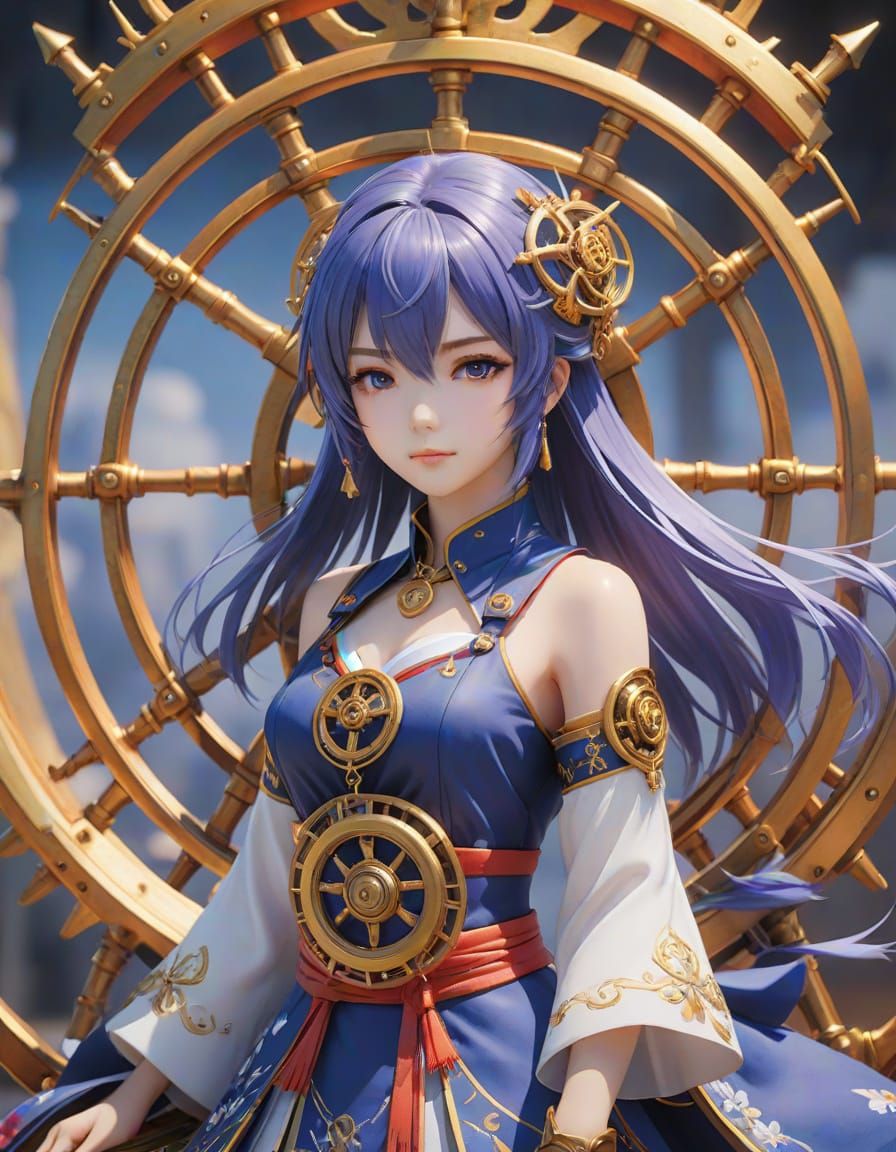 A vibrant anime-style tarot card illustration of the Wheel of Fortune. The image features destiny symbols and intricate wheel details, rendered with delicate brushstrokes and warm lighting. The art style is reminiscent of 3D anime art.