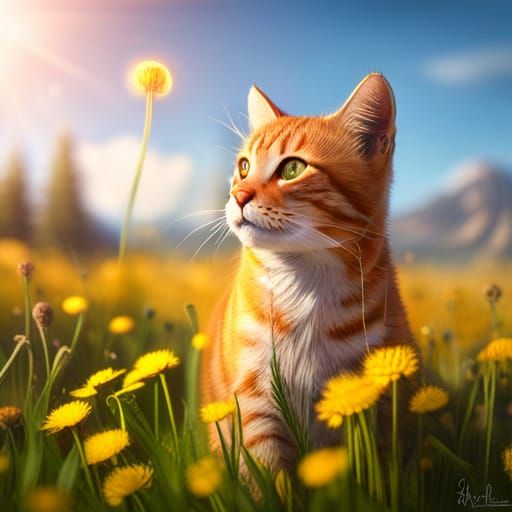 Create your own adorable cat pictures in a dandelion meadow with our free AI image generator!