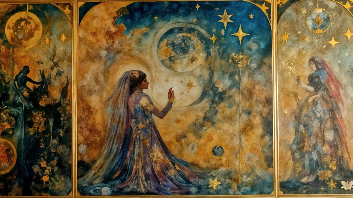 A dreamlike vision of an angel of reconciliation, intricately detailed in a modern surrealist art style reminiscent of an ancient shroud.