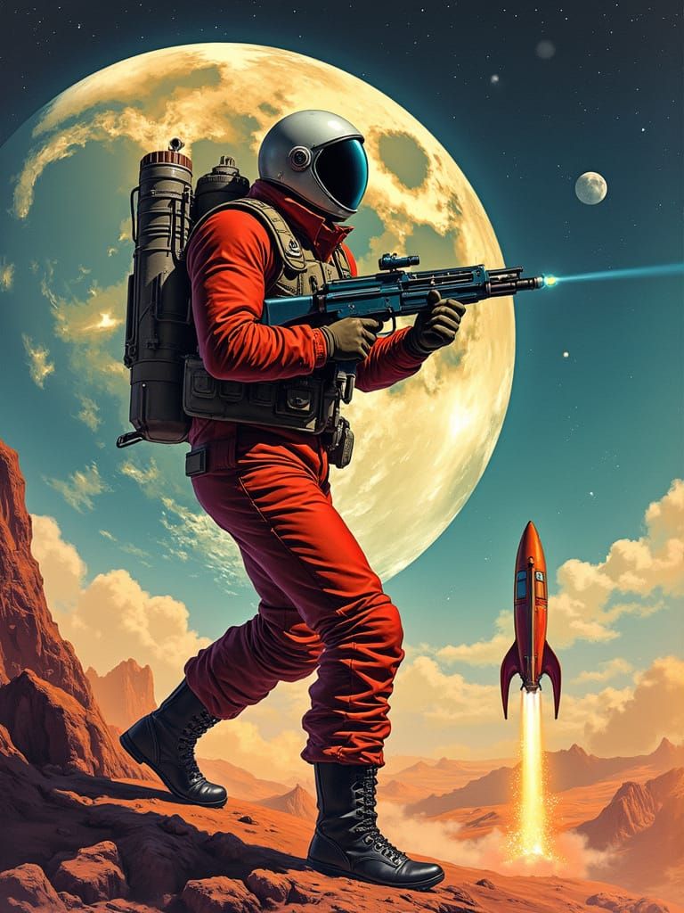 Easily generate vintage sci-fi illustrations with our free AI image maker, no design skills required