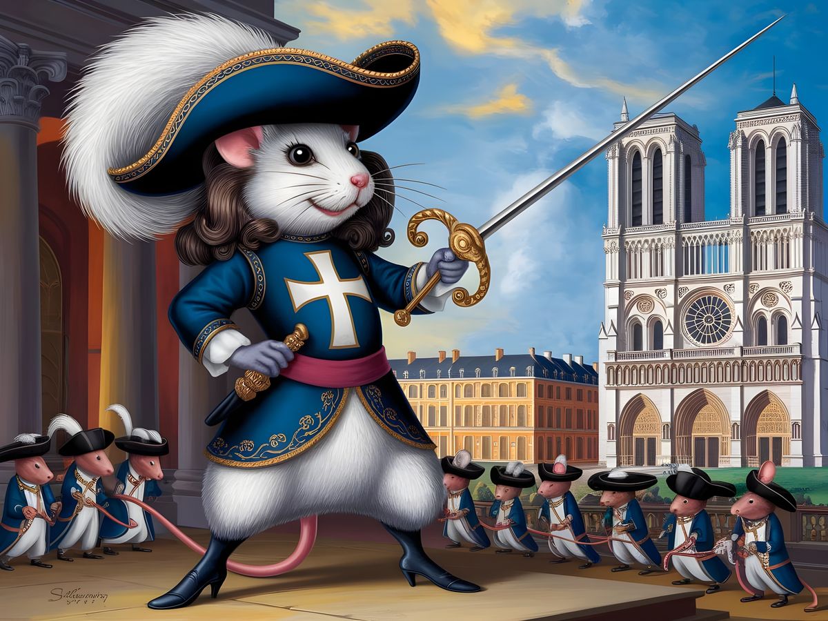 A female mouse as the Valentine, daughter of D'Artagnan, based on the books by Alexandre Dumas