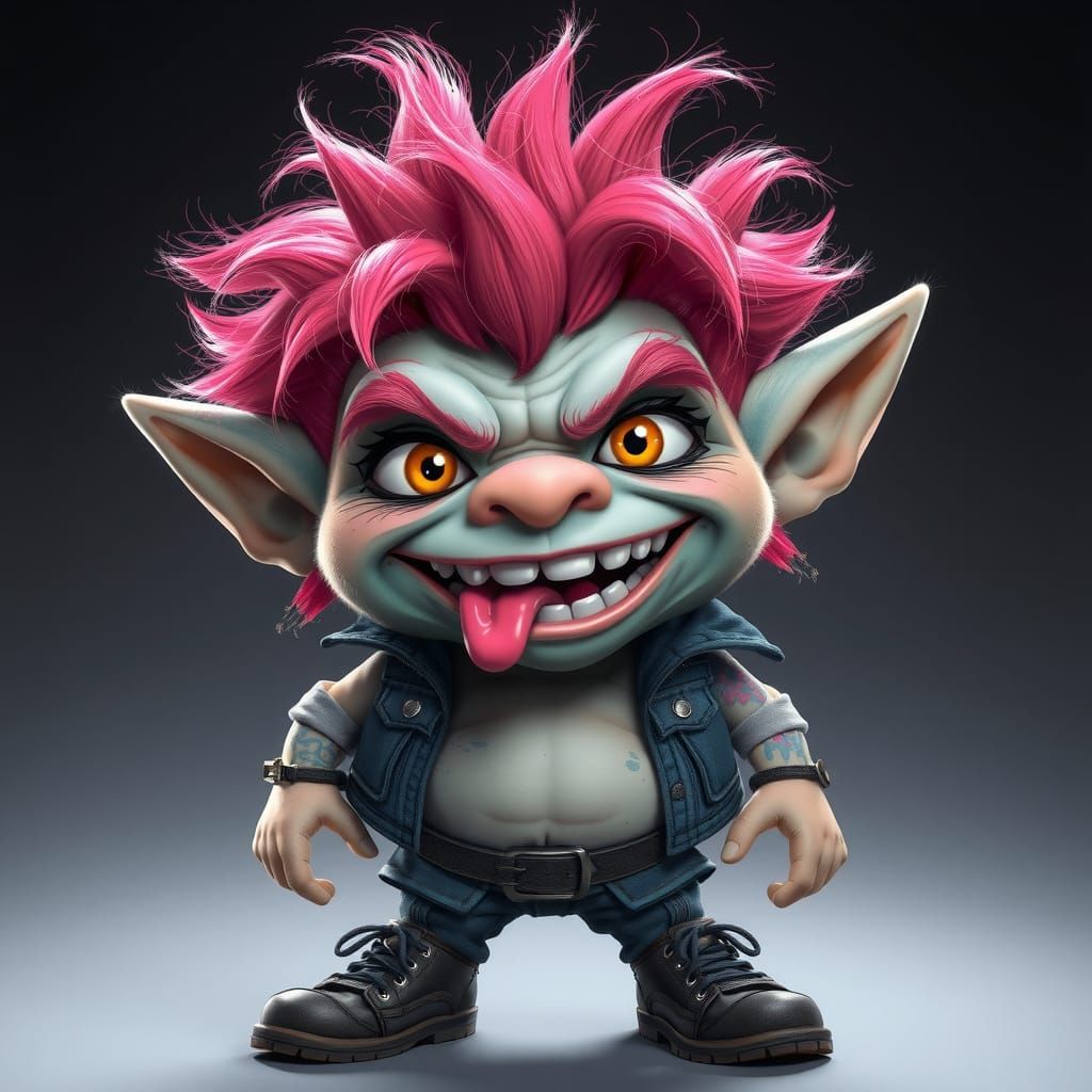 This image shows a mischievous punk troll character in stunning digital detail. The artwork features a vibrant and intricate design, capturing the essence of punk aesthetics.