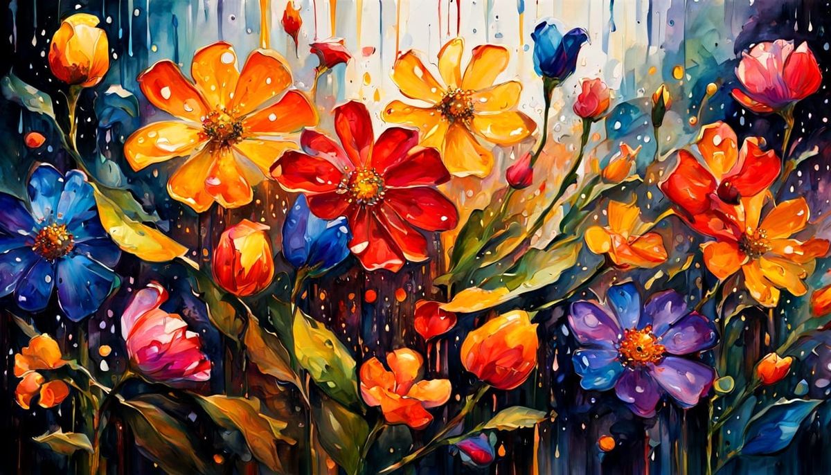 Easily generate your own stunning watercolor-style stained-glass flowers in rain images with our free AI image generator