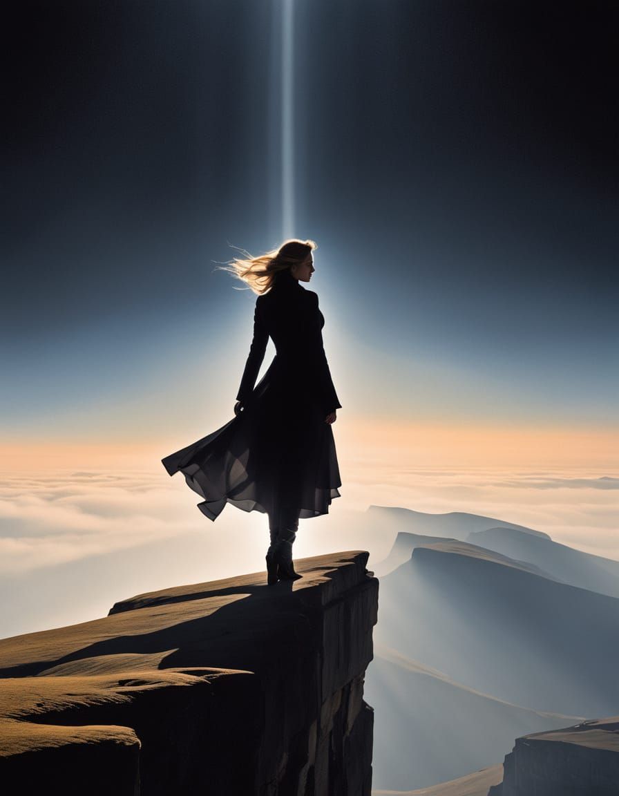 vertigo, acrophobia, extreme perspective, foreshortening, height, imbalance, visual tension, high angle shot, depth of field, standing at the edge of a cliff