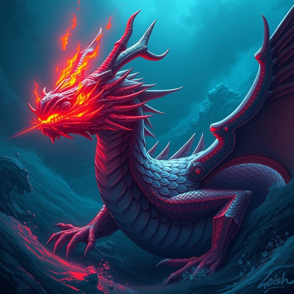 Create your own armored sea dragons breathing fire with our free AI image generator. It's easy and fun!