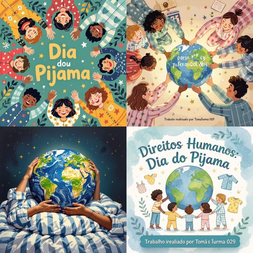 This image visually represents the themes of human rights and pajama day, possibly related to an educational project. It captures a unique intersection of social awareness and comfort.