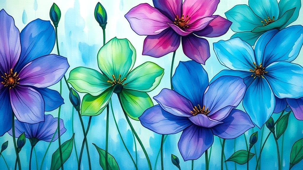 Easily design your own flower images with our free AI image generator, featuring beautiful stained-glass and watercolor effects