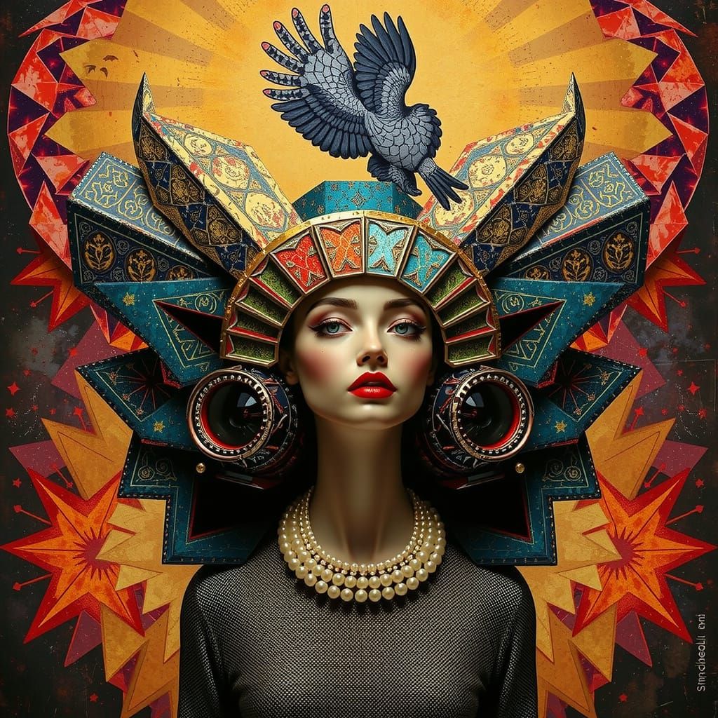 A vibrant image showcasing geometric patterns and optical illusions. This artwork blends Art Deco elements with glitch art aesthetics, creating a captivating and disorienting visual experience.