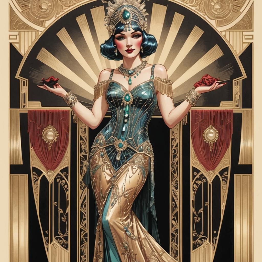 Create your own 1920s art deco flapper images with our AI image generator. It's free and easy!