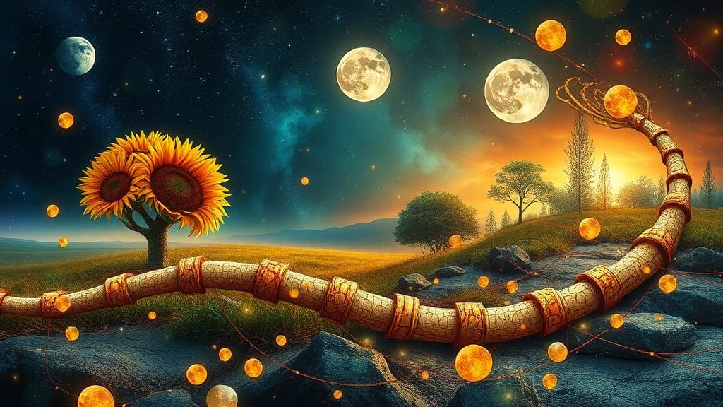 This mesmerizing digital artwork features a stunning blue-violet spectrum, blending Bio Art and cosmic elements in a thought-provoking piece that explores the connection between nature, spirit, and humanity.