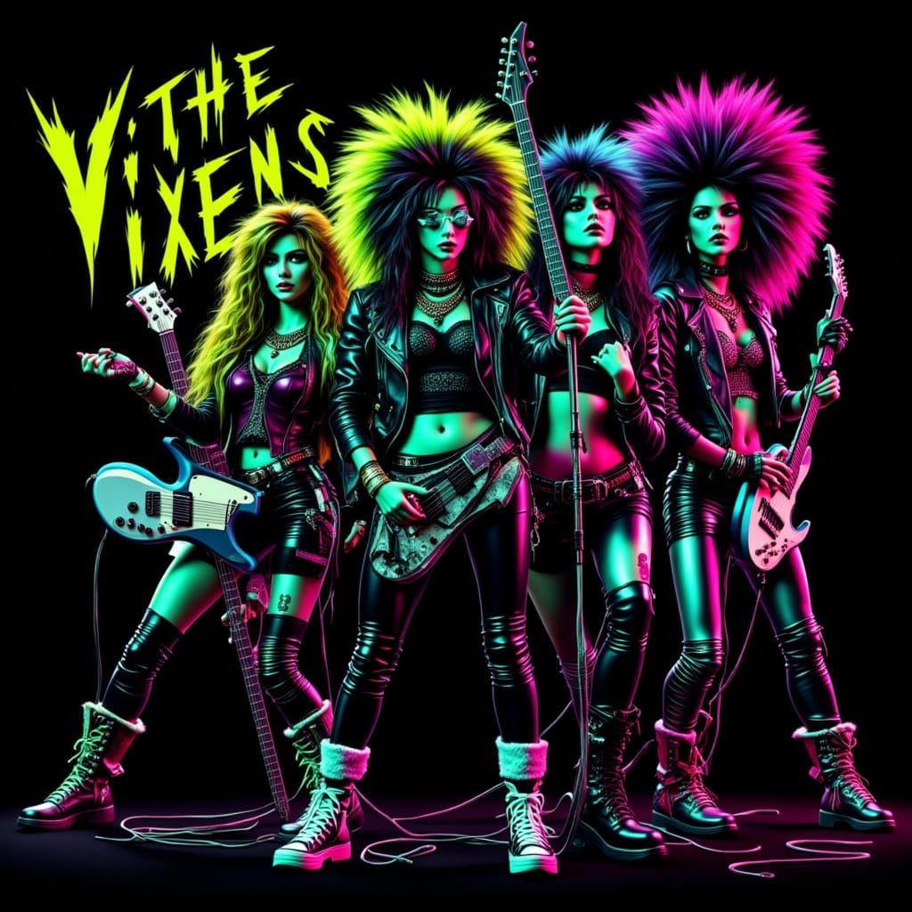 A vibrant album cover featuring a grunge-style hard rock band of women. The image has a dark aesthetic with neon green and blue accents, reminiscent of 90s rock.