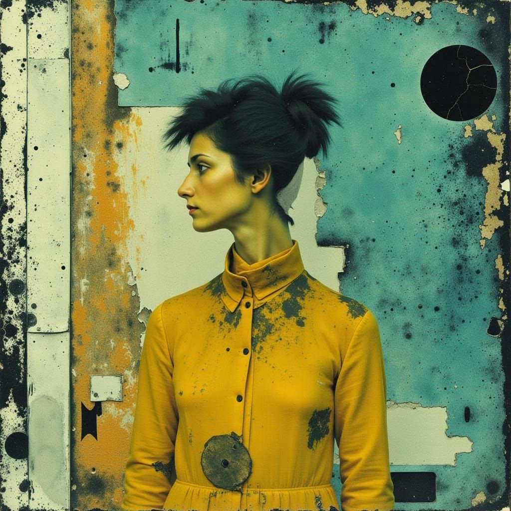 This image features a sharp focus with intricate details in teal, amber, and yellow. It presents a bright, vibrant contrast with a sense of ethereal beauty.
