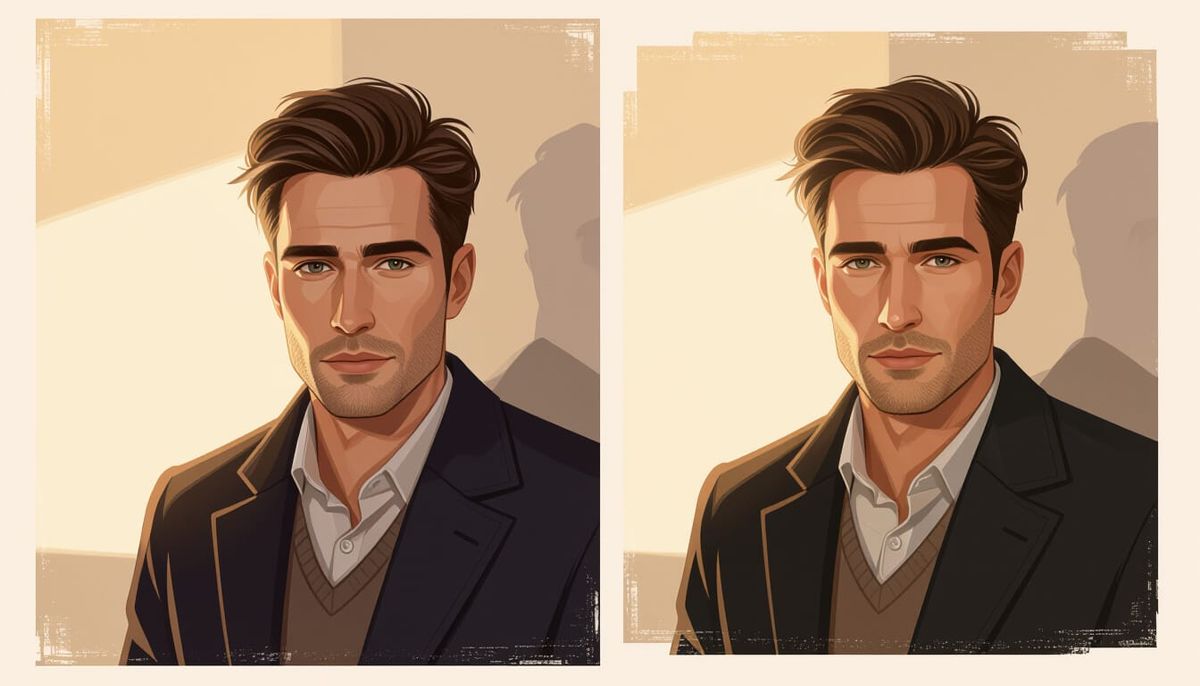 This image features a handsome, mysterious man with a thoughtful gaze, dressed in stylish casual clothing. The portrait is rendered in a modern, realistic style with warm, natural lighting.
