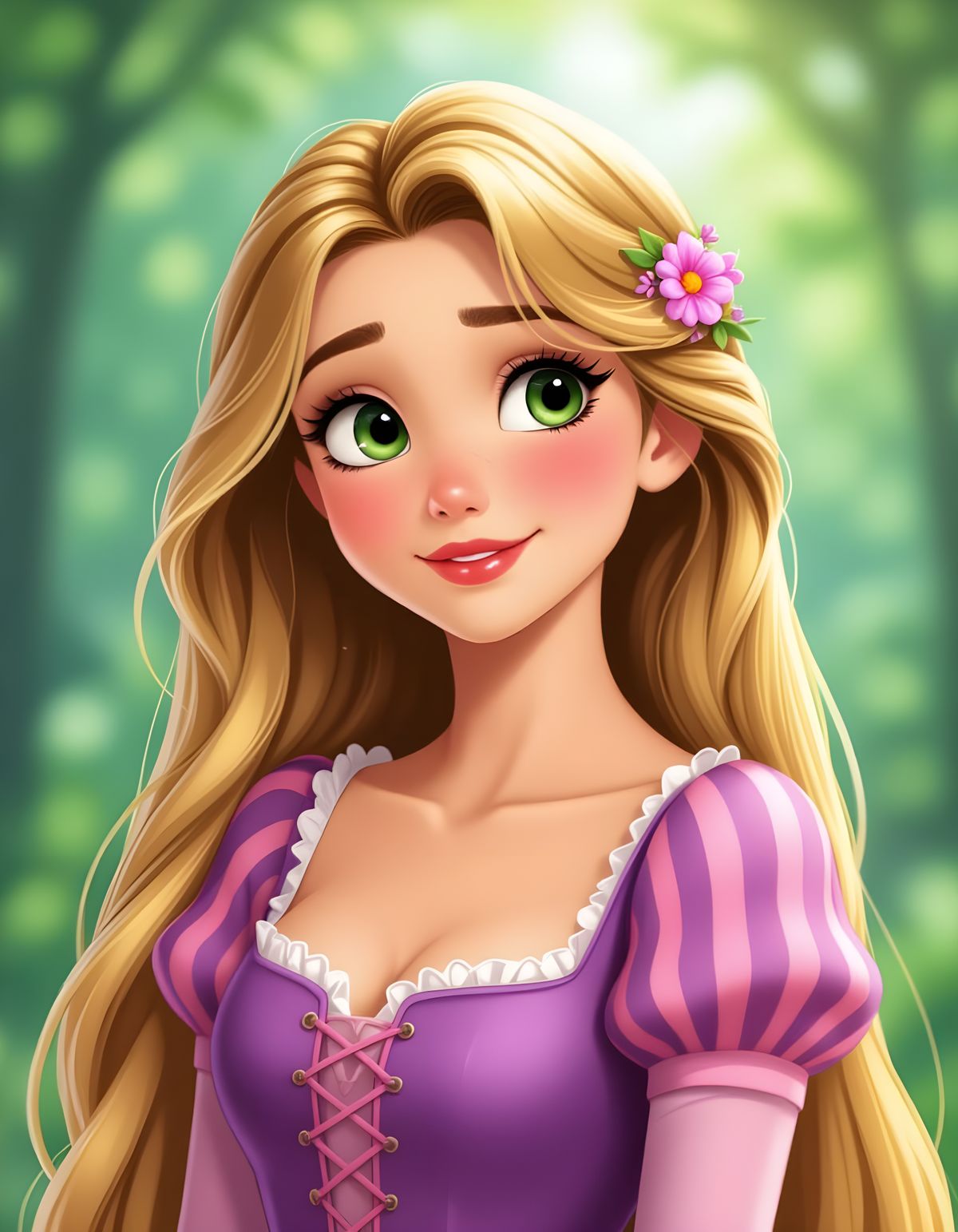 This image showcases an ultra-realistic portrait of Rapunzel, inspired by the 'Tangled' movie. It features highly detailed, 8k quality rendering for a stunning visual.