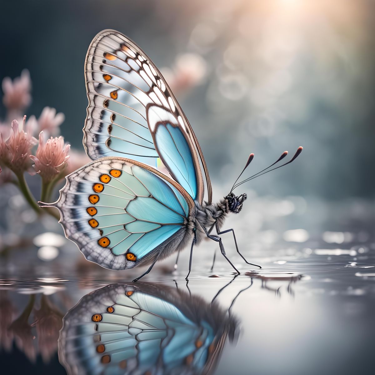 A shimmering crystal butterfly with intricate details and a soft pastel color palette. The hyperrealistic image is beautifully shot with sharp focus, high contrast, and atmospheric lighting.