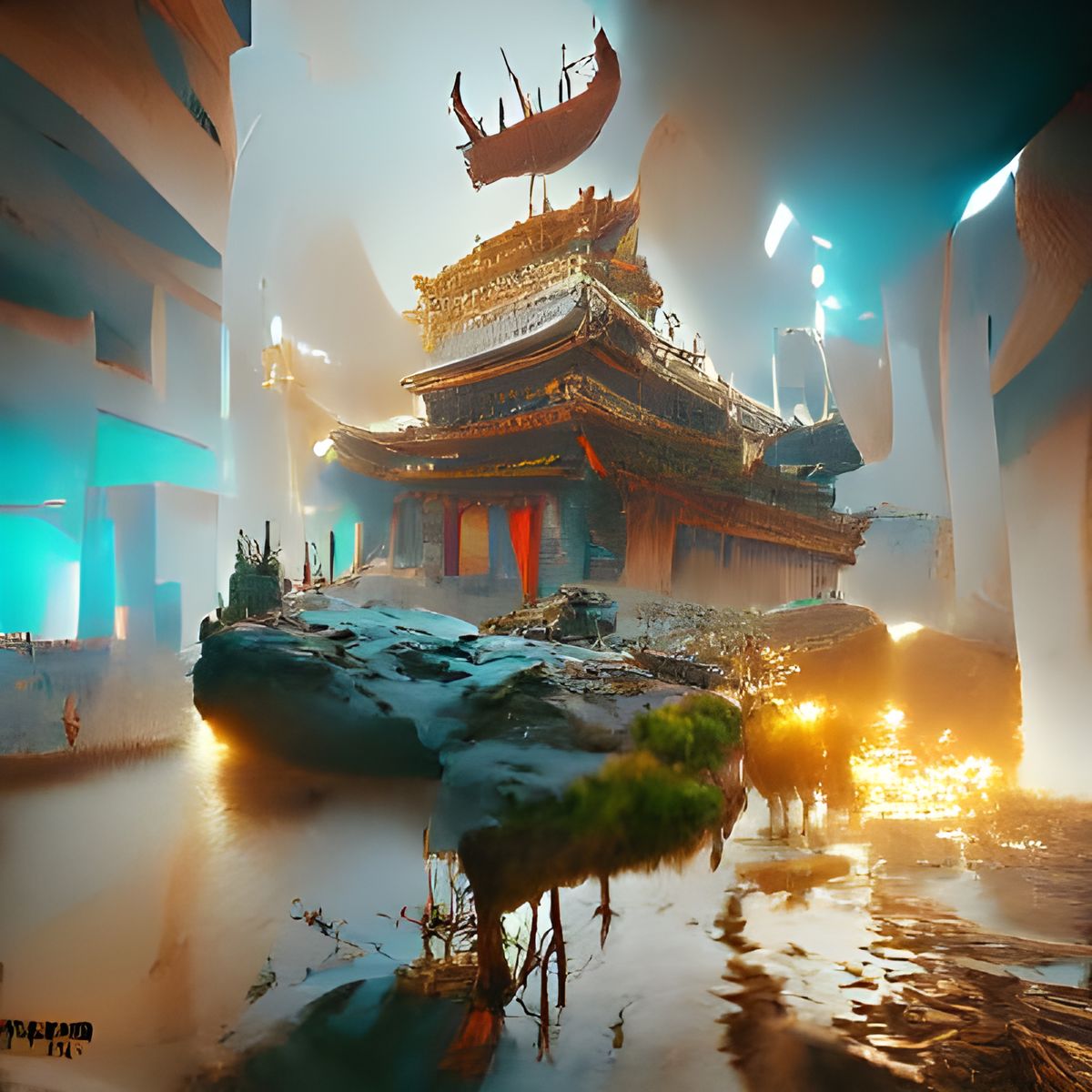 It's crazy how different this became from the starting image. Love how the temple looks like it fell out of a different era from the rest of the piece.