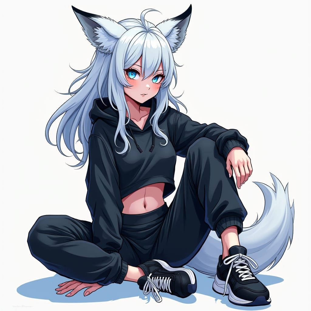 This vibrant anime-style image depicts a young fox demi-human girl with striking features, bold lines, and dynamic movement. Her athletic build and toned physique are accentuated by her short stature and visible abs, while her fox ears and tail add a touch of whimsy. Inspired by the works of H.R. Giger a...