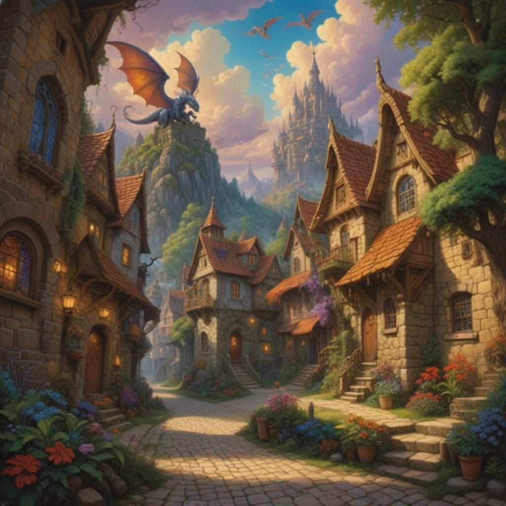 Easily generate unique images of dragons and villages with our free AI tool. Try it now!