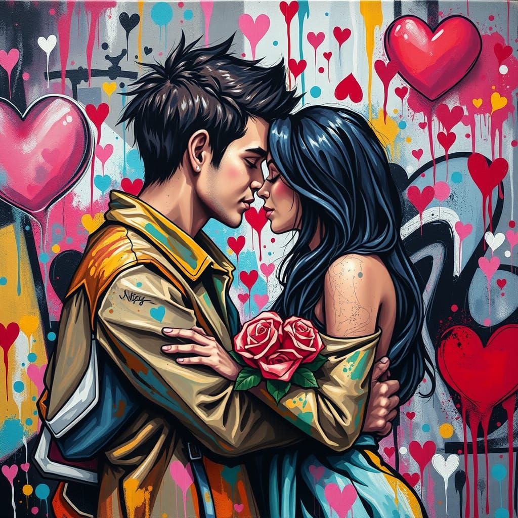 Easily create romantic graffiti art with our free AI image generator. No experience needed!