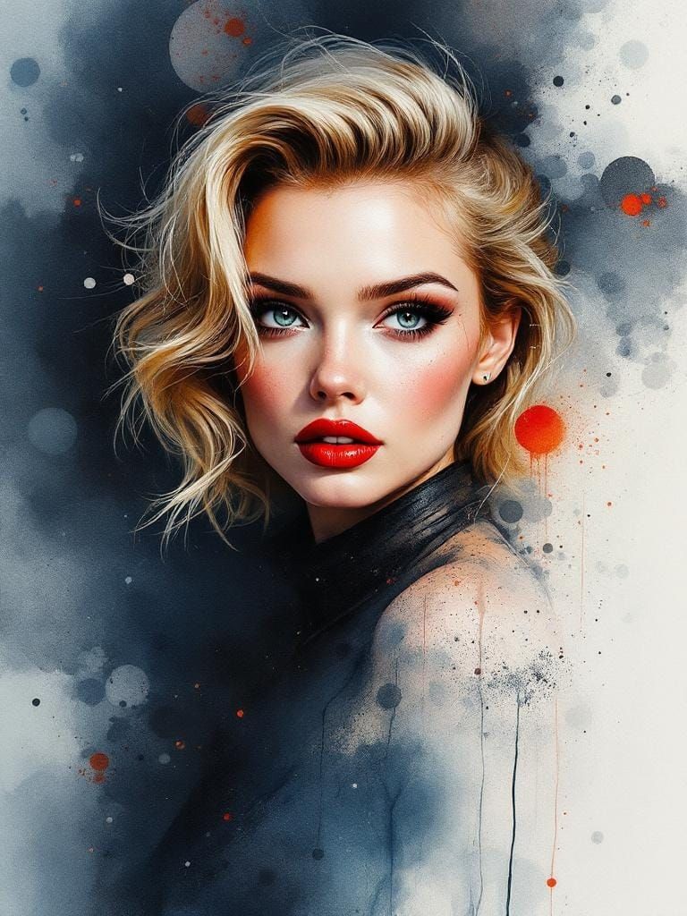 Craft striking AI portraits with blonde hair and bold red lips. It's free and easy to start creating your own unique images.