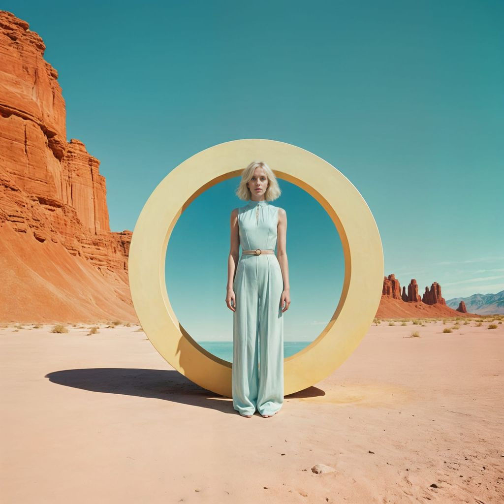 This image shows a rock star halo in an abstract oil on canvas composition. The minimalist artwork features opalescent skin tones and an analogous color palette.