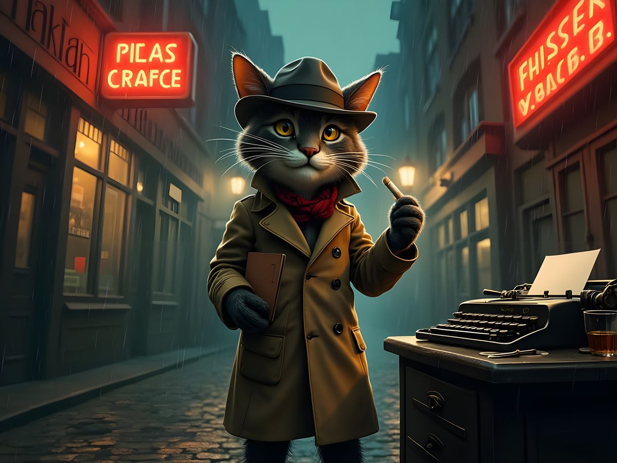 Easily generate your own film noir cat images with our free AI image generator. No design skills needed!