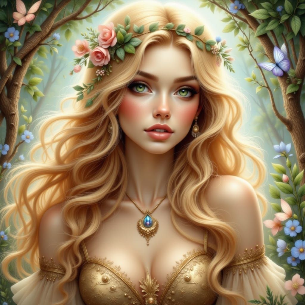 This image depicts a beautiful, busty woman with flowing blonde hair and green eyes, standing between the spectral forms of a man and a woman, symbolizing love irrespective of gender.