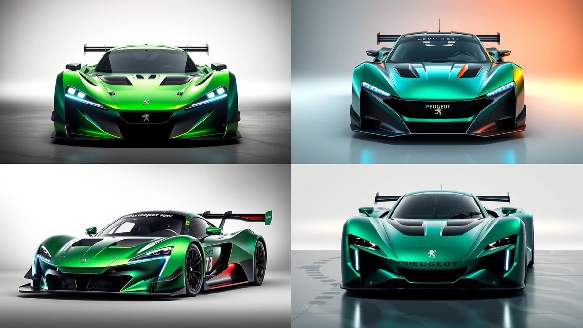 A sleek, metallic green race car with angular lines and LED accents, set against a futuristic gradient background with a hint of blue undertones, showcasing precision and attention to detail
